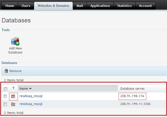 Database: Specify exact database name. For example, reseloaq_mssql.