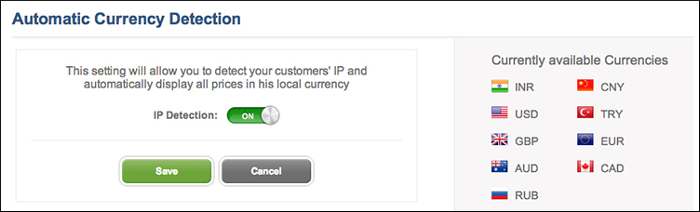 Automatic detection of visitor’s IP for displaying prices in local currency