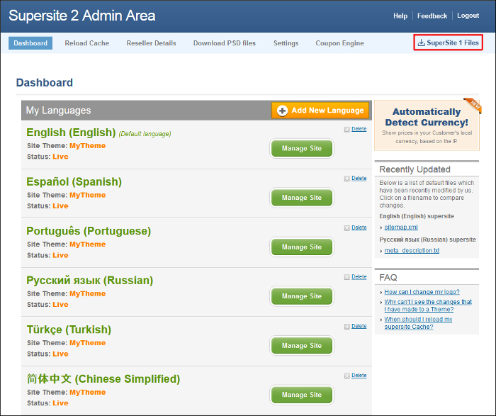 Any other customizations on your old SuperSite need to be replicated manually on your SuperSite 2 before the deprecation. Your old SuperSite files will be made available in the SuperSite 2 Admin Area for a short period of time, from where you can retrieve them, if required, after the deprecation.