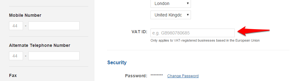 icon at the top right corner of the page and then clicking on Manage Profile. You can then enter your VAT ID in the provided field.