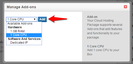You can increase or decrease the amount of RAM or CPU cores on your Cloud Hosting Plan by following the steps below.