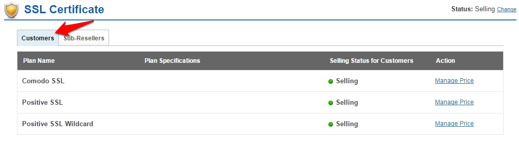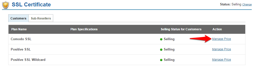 You can set the selling prices for your SSL Certificate Plans by following the steps below: