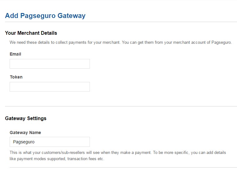 You will need to sign up for a Merchant account at PagSeguro and obtain the Merchant Email address and Token.