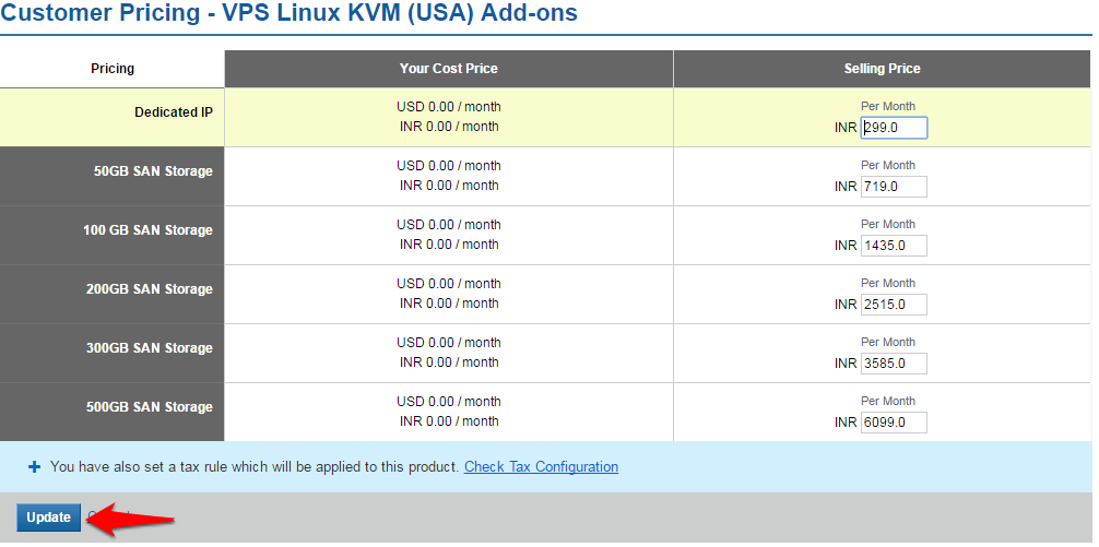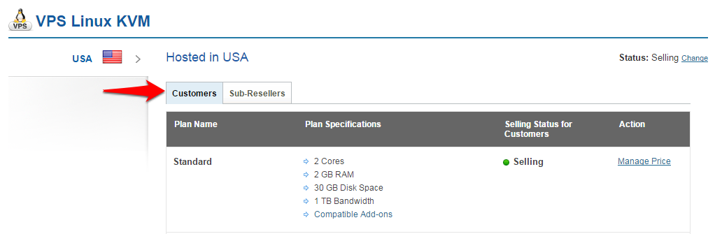 Follow the steps below to set your Selling Prices for VPS Linux KVM Plans.