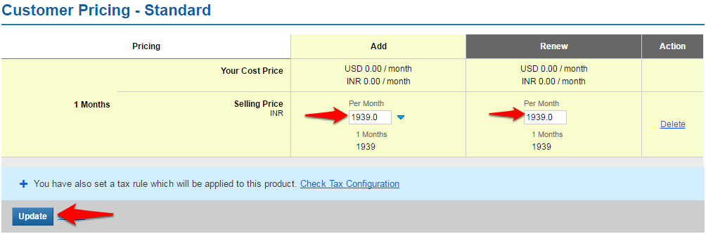 Add the per month Selling Price and click on the Update button to save your changes.