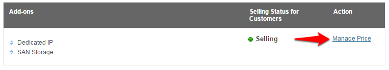 You can set the pricing for Add-ons by clicking on the Manage Prices link under the Add-ons section.