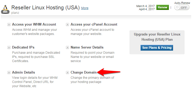 Example: If there is an existing Single Domain Linux Hosting package for mydomain.com, you cannot change the primary Domain name of another Single Domain Linux Hosting package to mydomain.com.