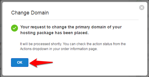 • The primary domain name of the hosting package cannot be modified, if the new domain is already hosted on the same server under a different hosting package.