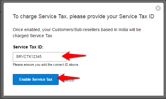 Enter your Service Tax ID in the provided field and click on Enable Service Tax.