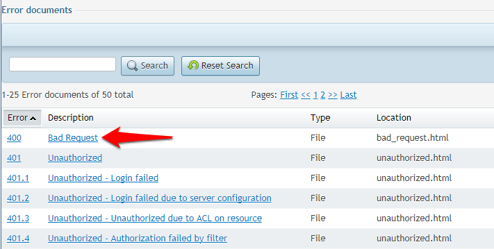 Click on Error Documents.